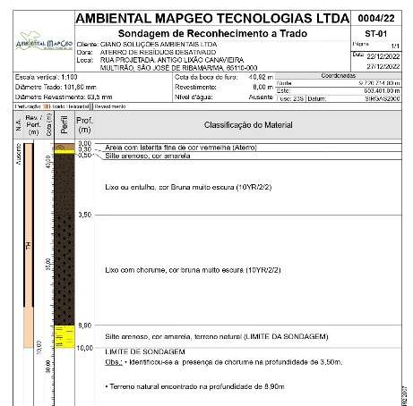 SONDAGEM AMBIENTAL, CONSTRUÇÃO E INSTALAÇÃO DE POÇOS DE MONITORAMENTO-